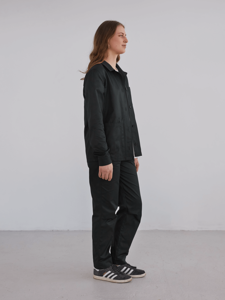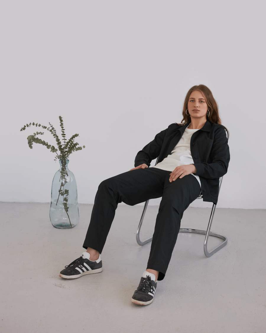 Низ брюк можно подвернуть. В районе колен защипы. Ширинка на молнии с пуговицей из перламутра. Внутри пояса резинка с петлями, которая позволит регулировать объем и посадку брюк. Спереди два глубоких кармана. Сзади один карман справа.