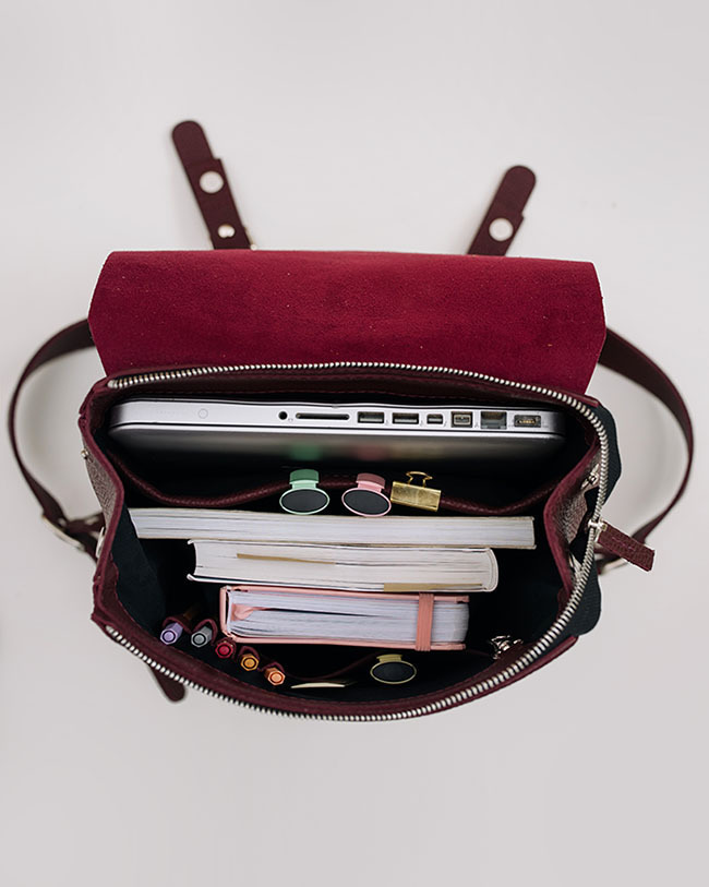 Лучшее в ней – это пропорции и размеры. Мы сами были студентами и сейчас часто работаем в кафе, постоянно носим важные документы, читаем книги в метро, а по пути домой покупаем продукты. Все – ноутбук, книги, блокнот, косметичка, ручки и прочая мелочь – легко помещается в этот рюкзак, а листы А4 не мнутся.