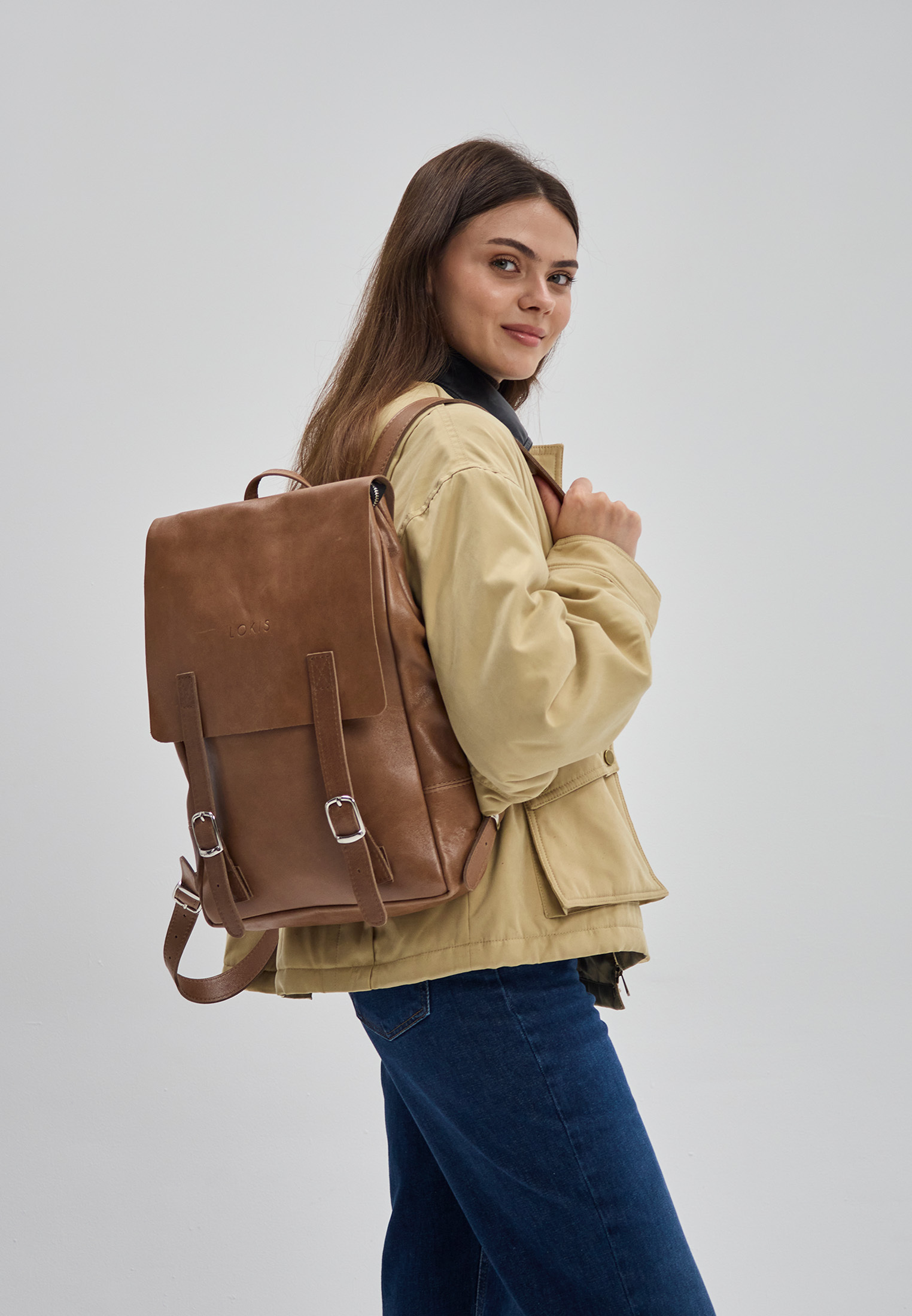 Рюкзак сшит из натуральной кожи, а внутри - подкладка из хлопка.