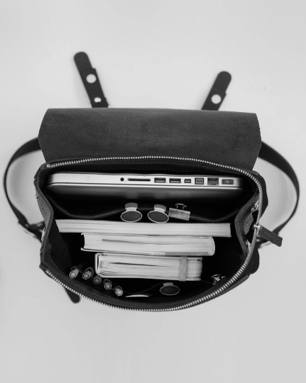 Лучшее в ней – это пропорции и размеры. Мы сами были студентами и сейчас часто работаем в кафе, постоянно носим важные документы, читаем книги в метро, а по пути домой покупаем продукты. Все – ноутбук, книги, блокнот, косметичка, ручки и прочая мелочь – легко помещается в этот рюкзак, а листы А4 не мнутся.
