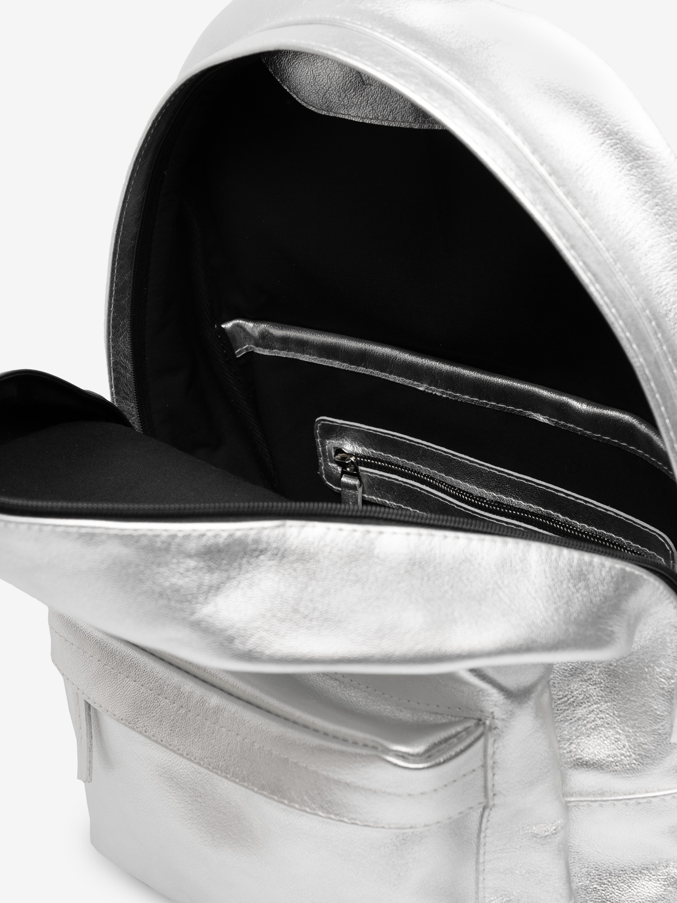 - материал: натуральная кожа КРС с серебристой отделкой, хлопковая подкладка;