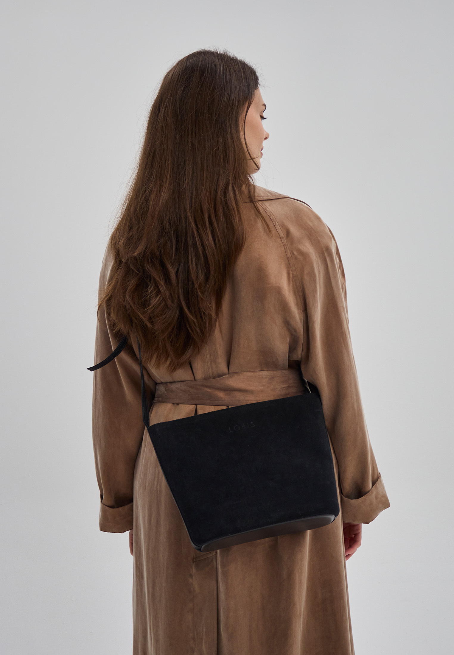 Сумка через плечо из натуральной замши среднего размера.