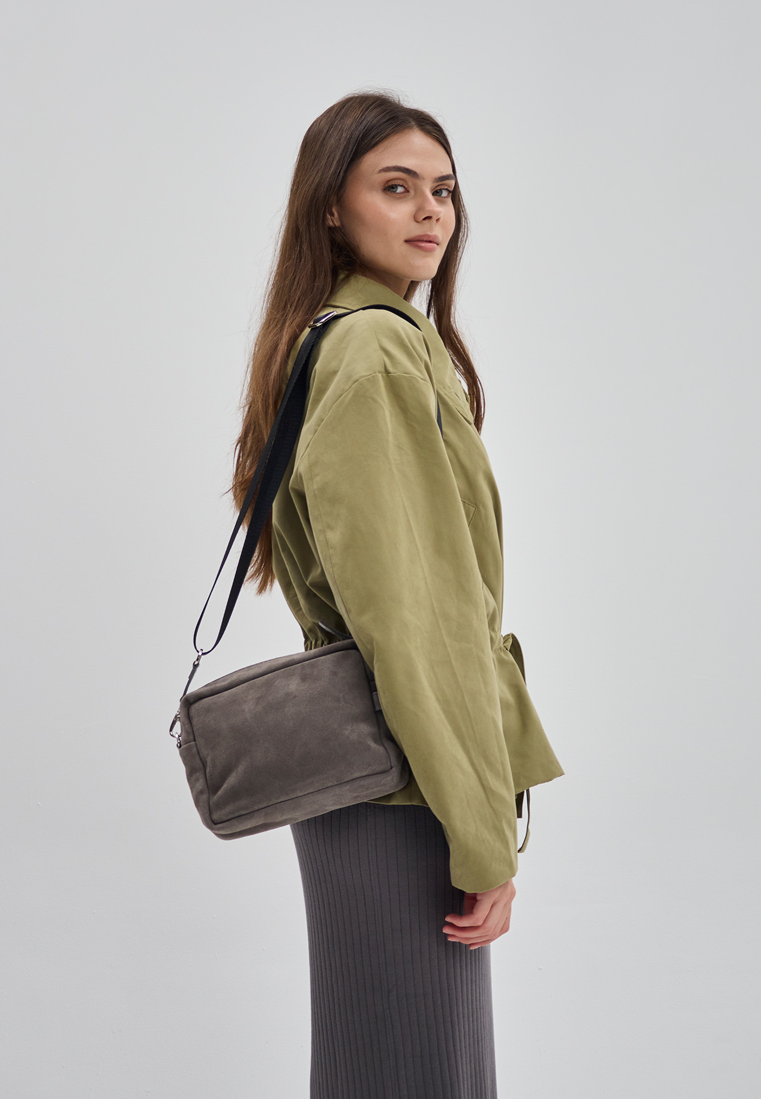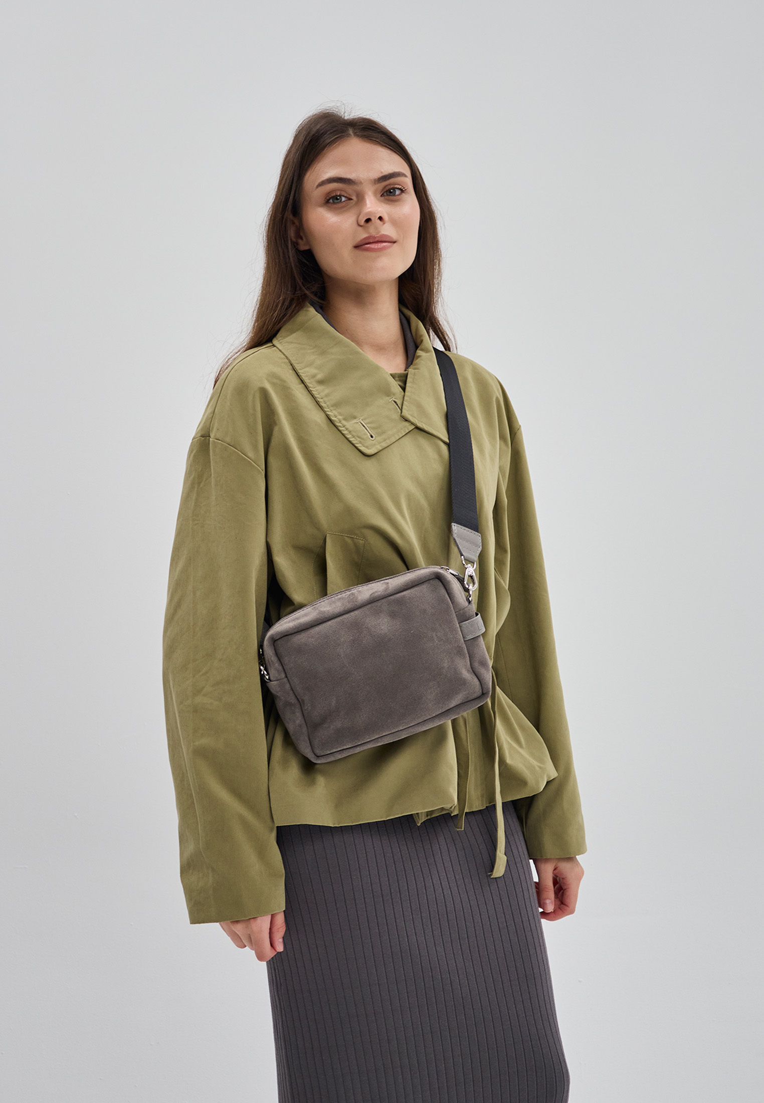 Эта стильная и элегантная сумка изготовлена из высококачественной замши, что придаёт ей роскошный вид и приятные тактильные ощущения. Серый цвет делает аксессуар универсальным для любого образа.