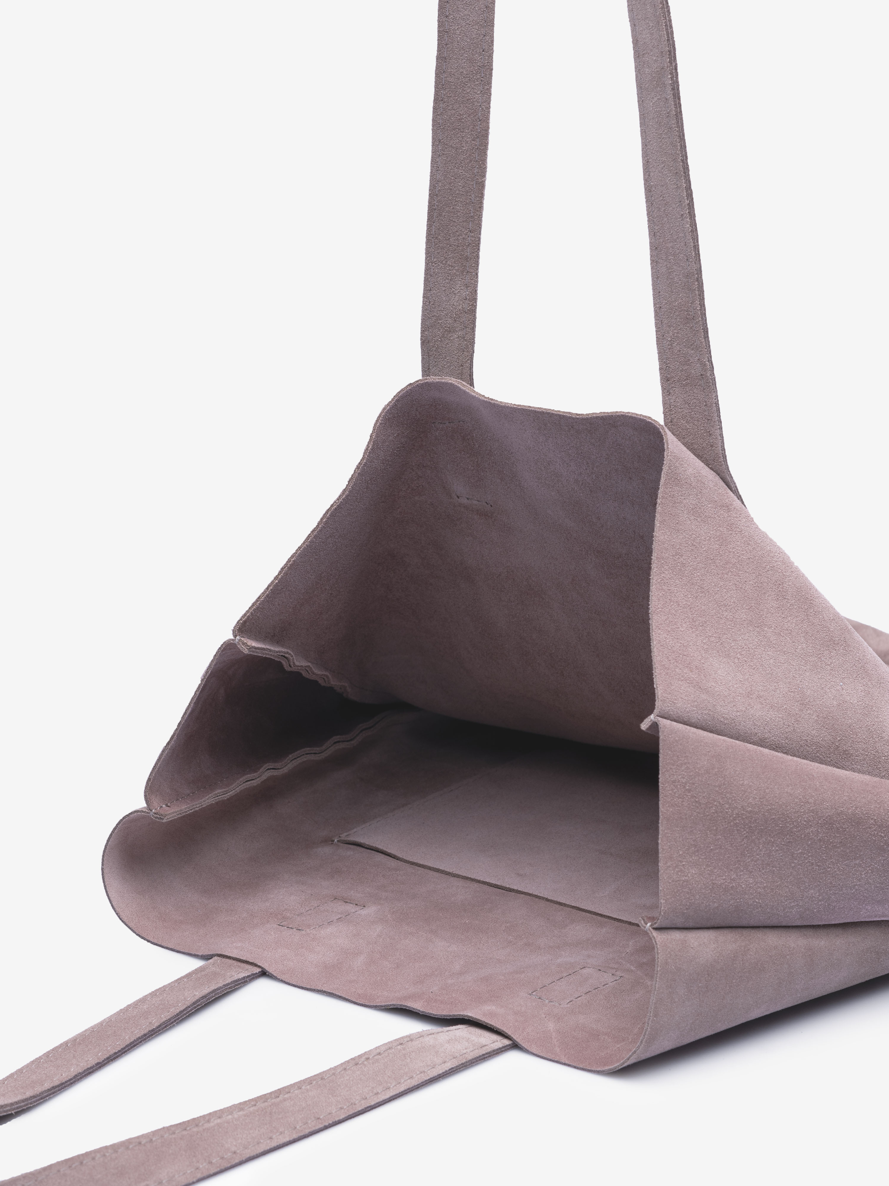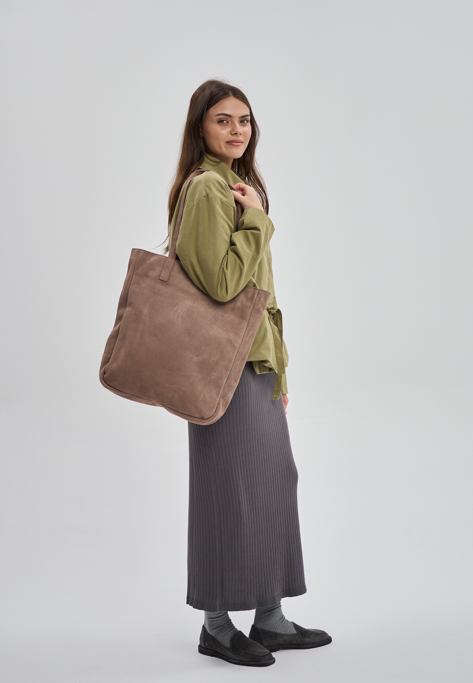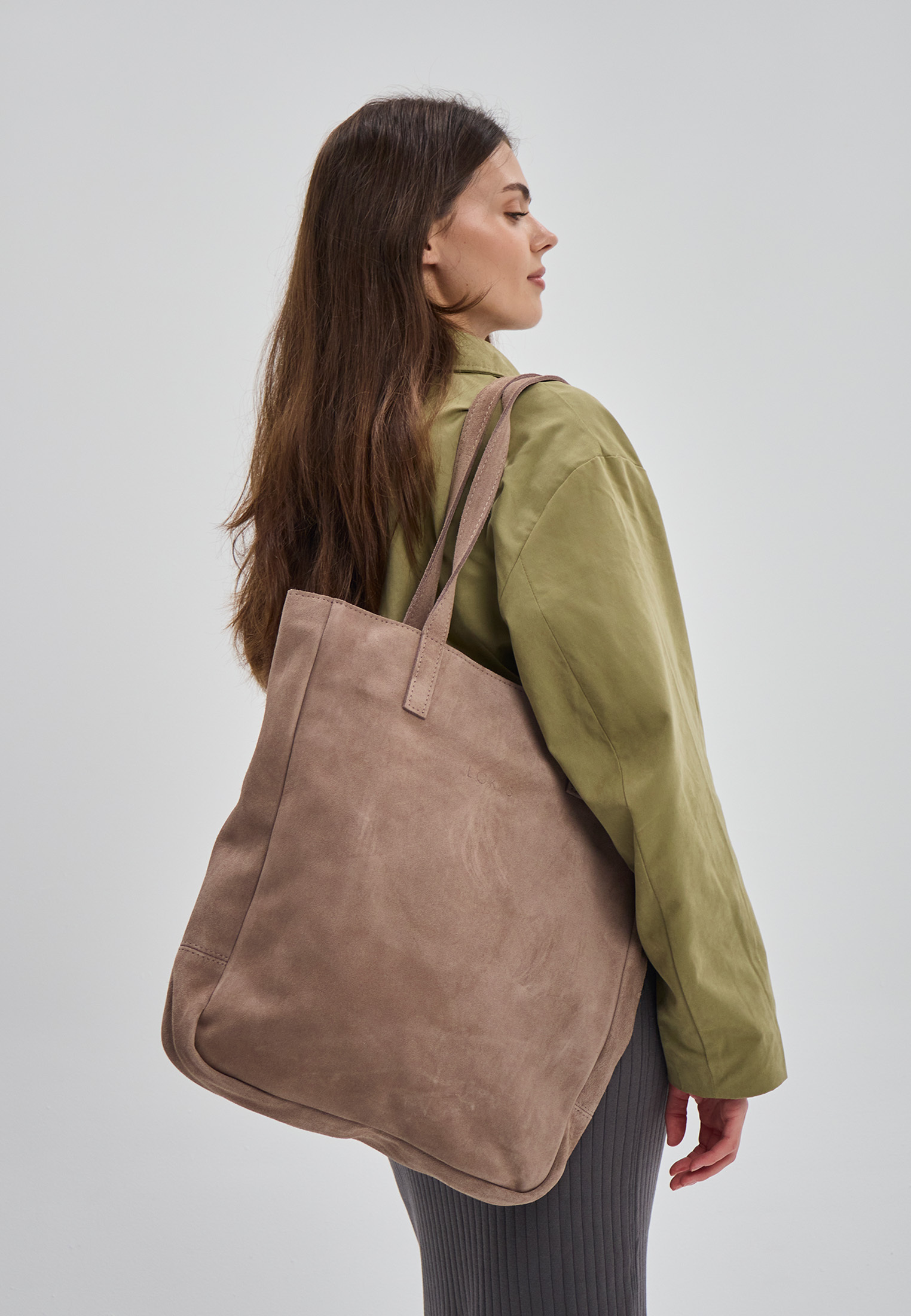 Этот шоппер насыщенного цвета. Не рекомендуем носить его со светлой одеждой в первую неделю. Излишки красителя будут выделяться на первых порах носки, поэтому замша может окрашивать светлую одежду. Чтобы свести этот эффект к минимуму рекомендуем использовать аэрозольную пропитку для замши.