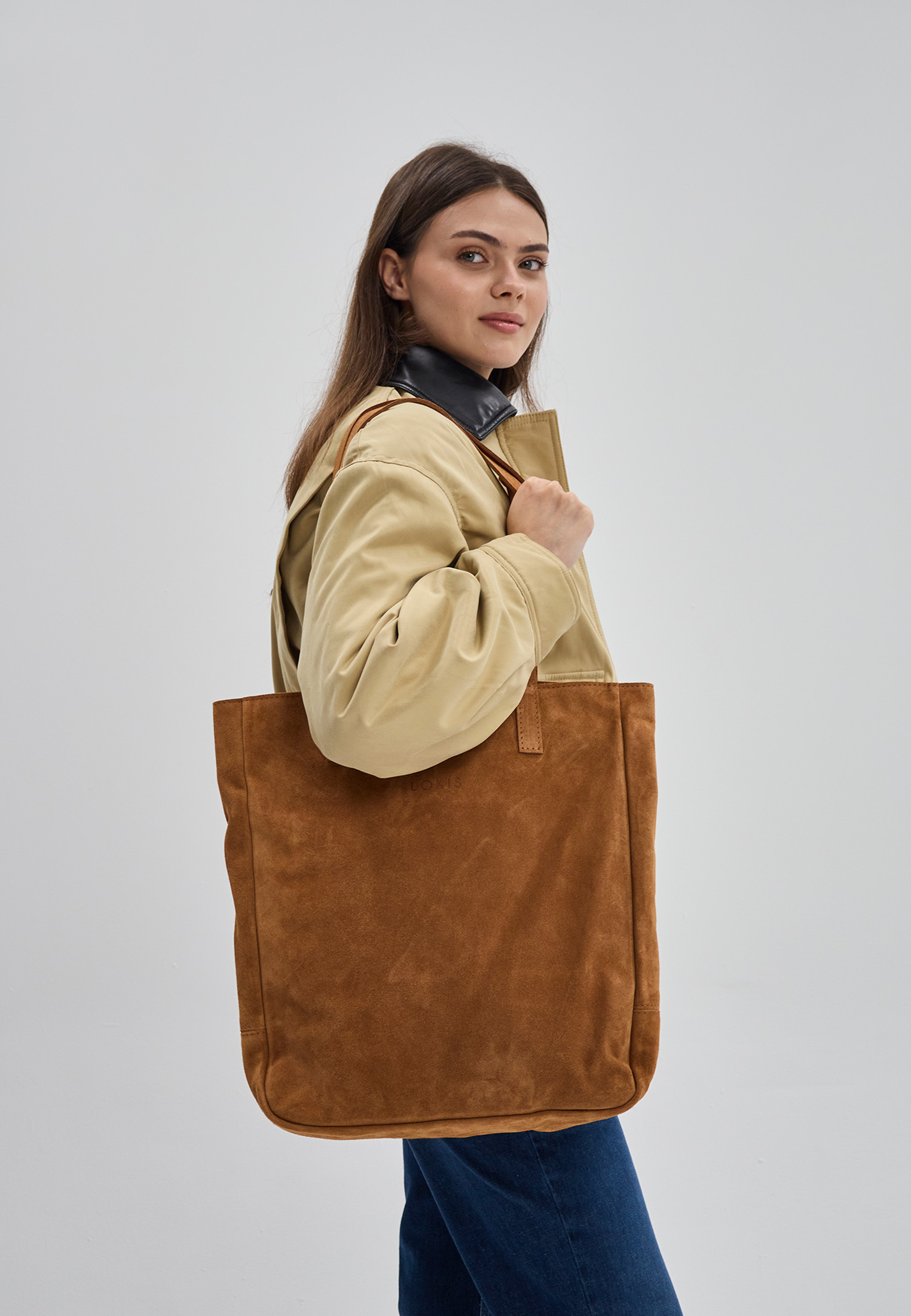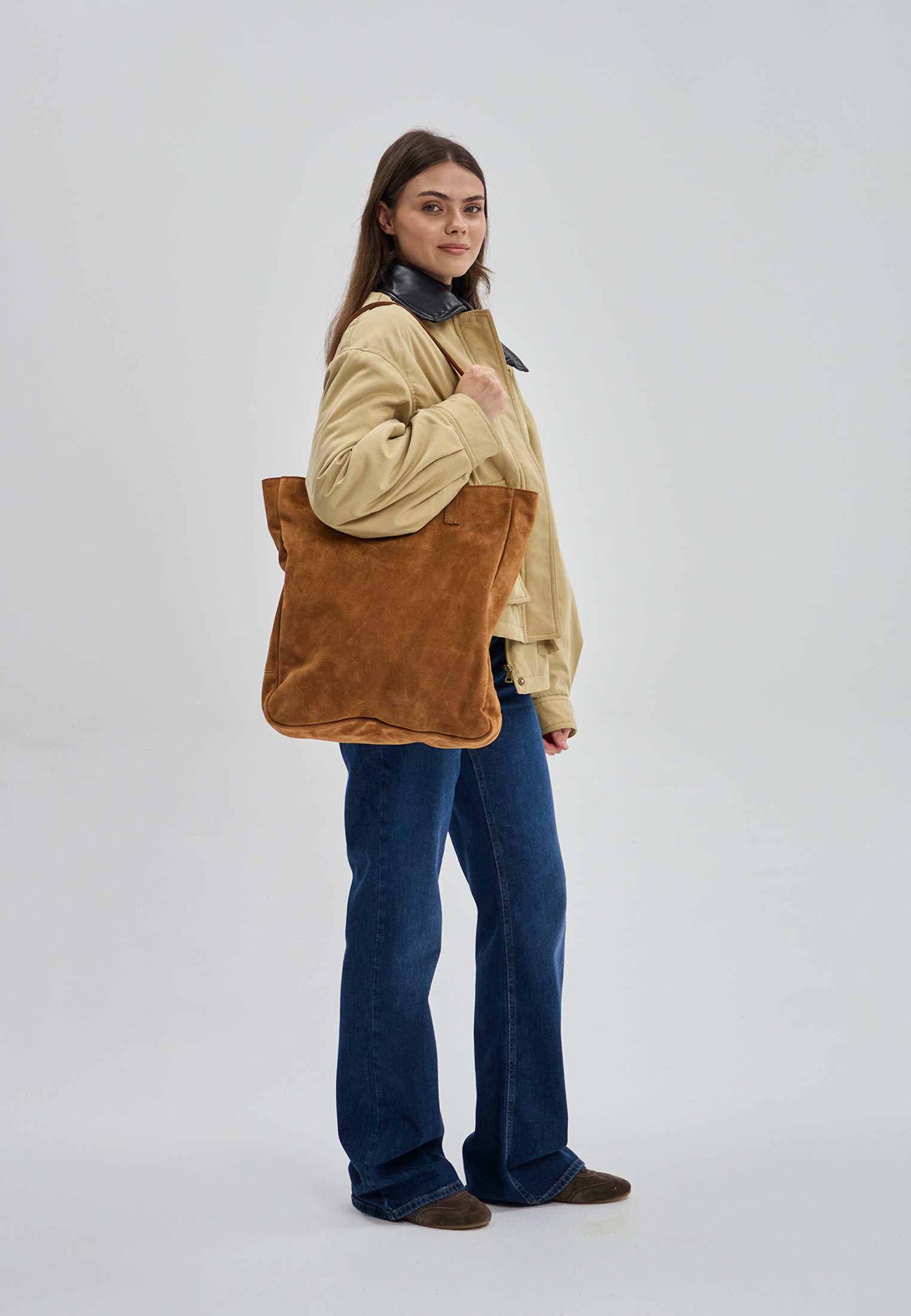 Этот шоппер насыщенного цвета. Не рекомендуем носить его со светлой одеждой в первую неделю. Излишки красителя будут выделяться на первых порах носки, поэтому замша может окрашивать светлую одежду. Чтобы свести этот эффект к минимуму рекомендуем использовать аэрозольную пропитку для замши.