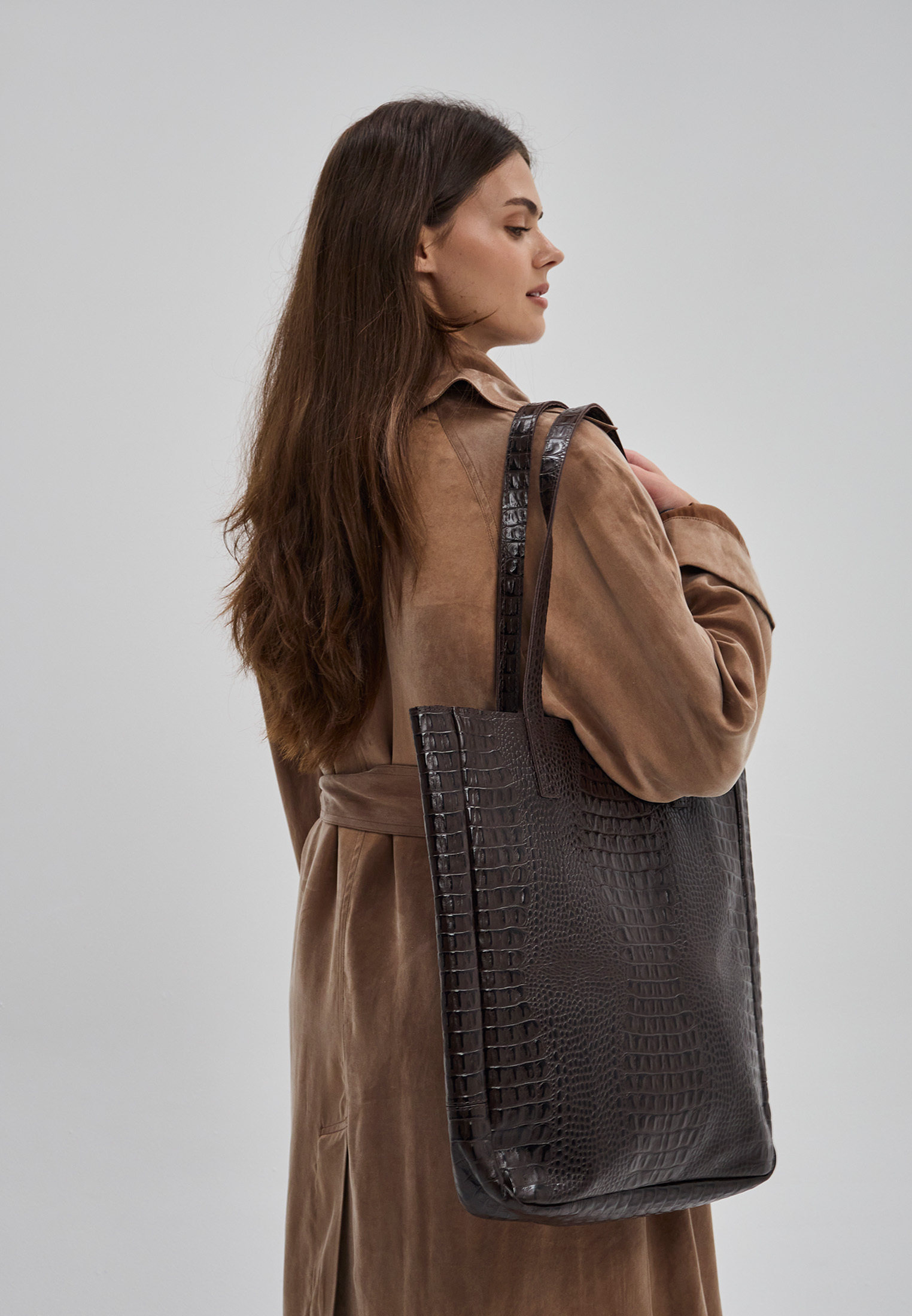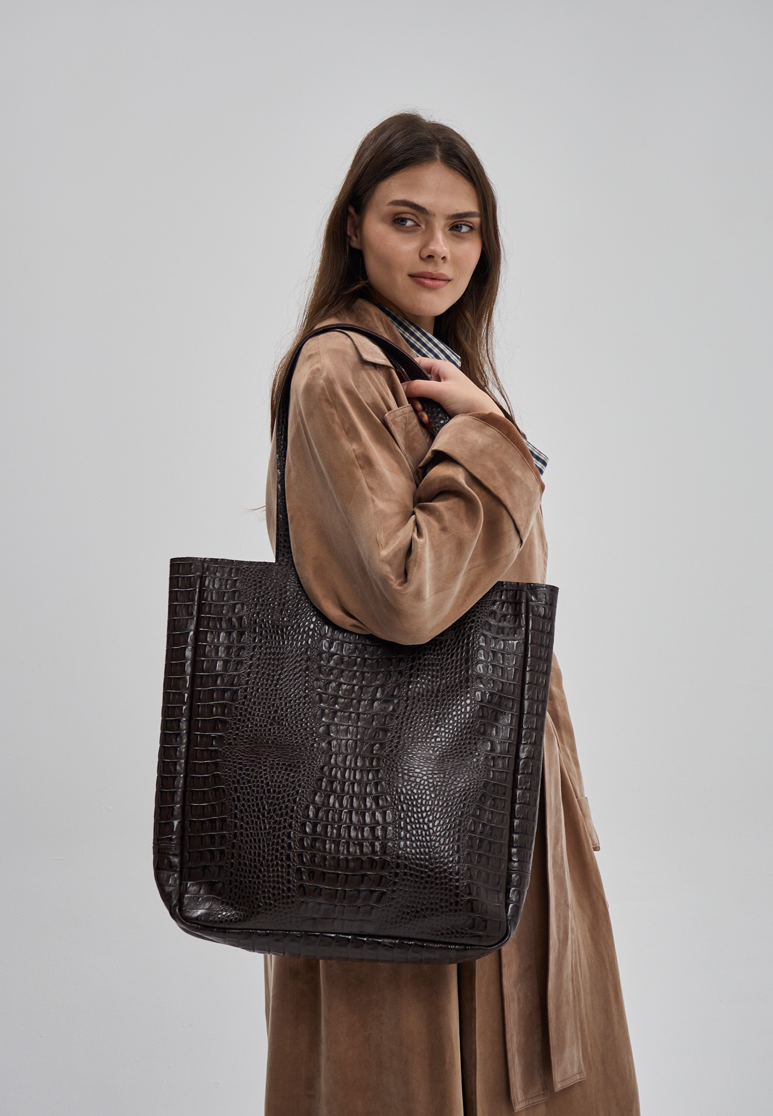Мы ценим простоту и функциональность больше, чем декоративные элементы. Эта сумка в первую очередь удобна: вместительная и легкая, а для паспорта, кошелька и ключей внутри есть настрочной карман. Модель выполнена из натуральной кожи, внутри подкладка из 100% хлопка. Шоппер закрывается на молнию.