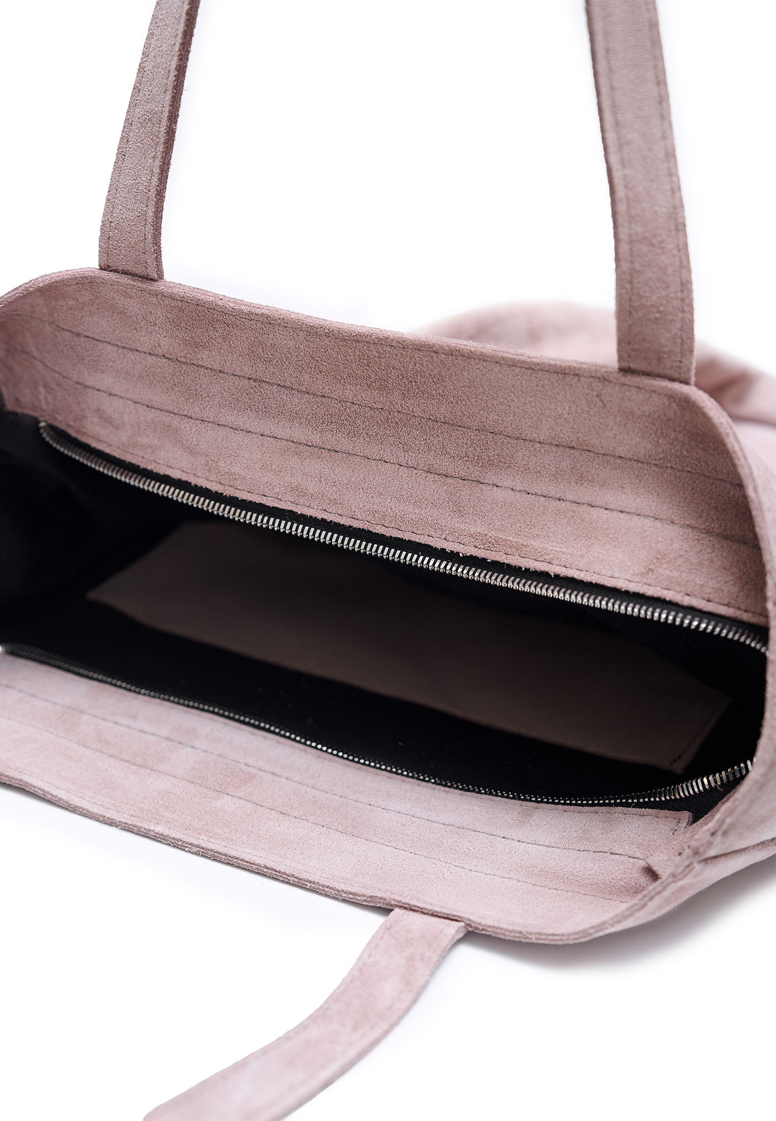 Этот шоппер насыщенного цвета. Не рекомендуем носить его со светлой одеждой в первую неделю. Излишки красителя будут выделяться на первых порах носки, поэтому замша может окрашивать светлую одежду. Чтобы свести этот эффект к минимуму рекомендуем использовать аэрозольную пропитку для замши.