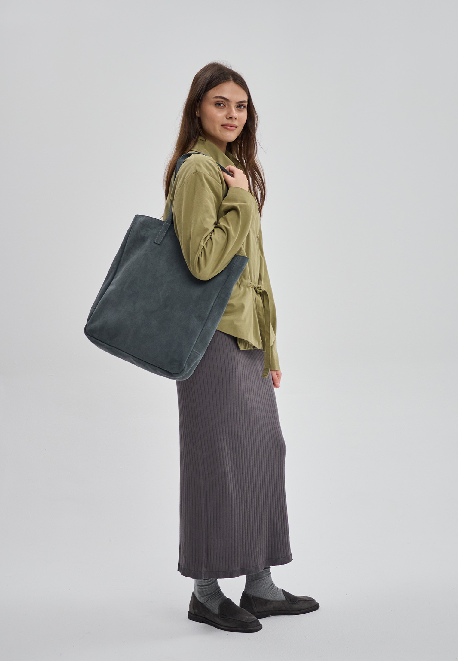 Этот шоппер насыщенного цвета. Не рекомендуем носить его со светлой одеждой в первую неделю. Излишки красителя будут выделяться на первых порах носки, поэтому замша может окрашивать светлую одежду. Чтобы свести этот эффект к минимуму рекомендуем использовать аэрозольную пропитку для замши.