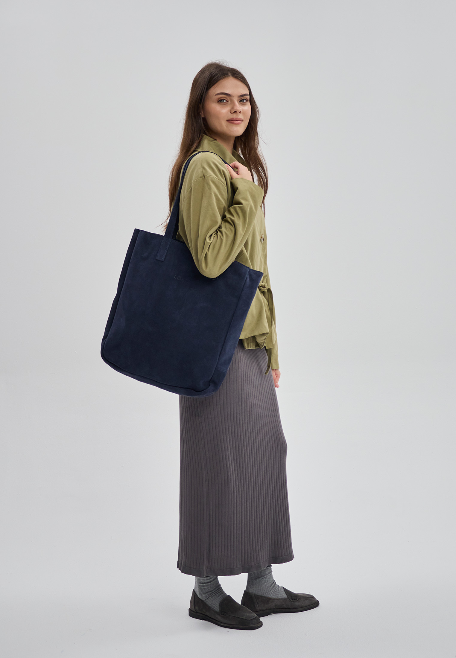 Этот шоппер насыщенного цвета. Не рекомендуем носить его со светлой одеждой в первую неделю. Излишки красителя будут выделяться на первых порах носки, поэтому замша может окрашивать светлую одежду. Чтобы свести этот эффект к минимуму рекомендуем использовать аэрозольную пропитку для замши.