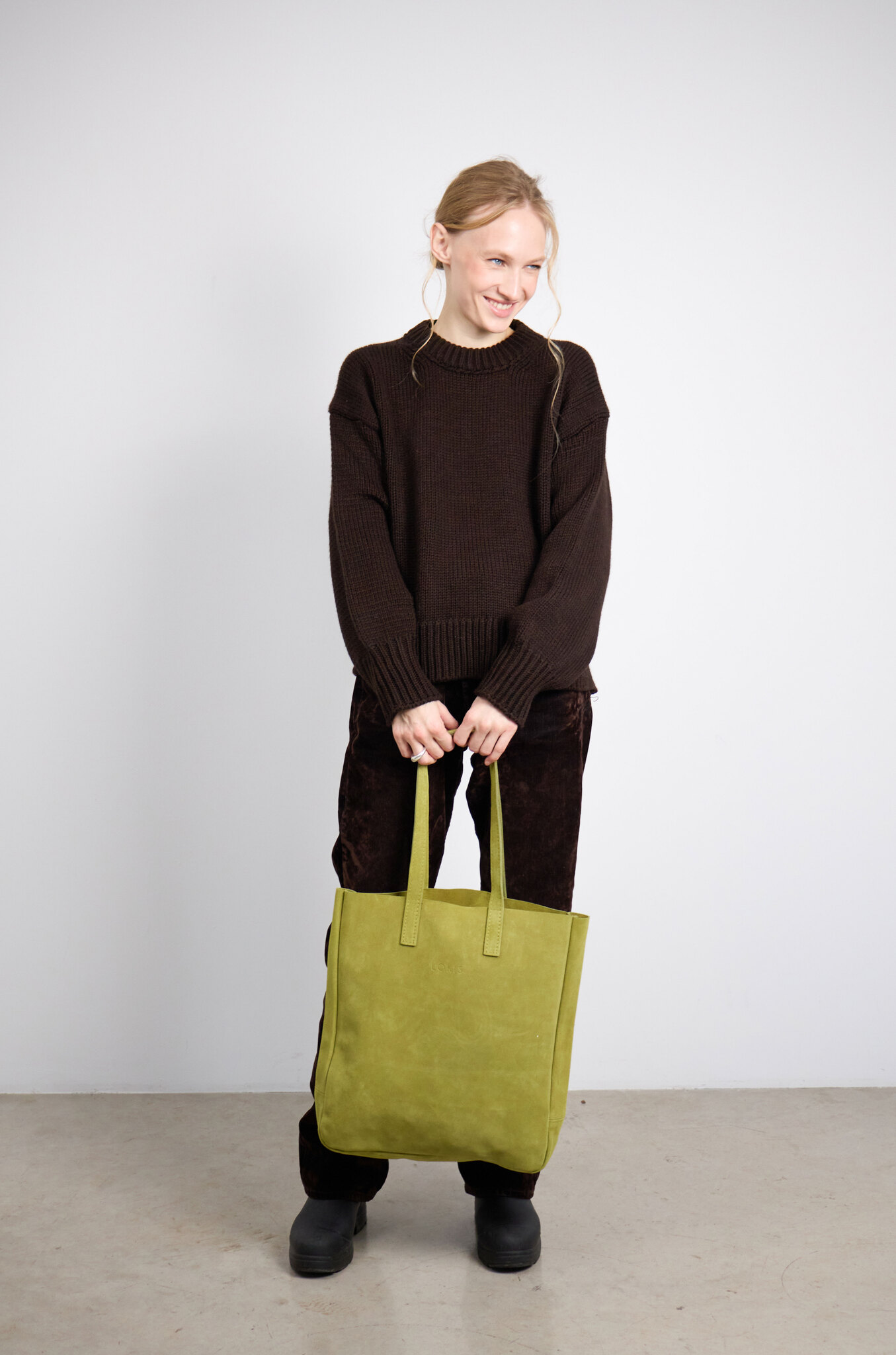 Этот шоппер насыщенного цвета. Не рекомендуем носить его со светлой одеждой в первую неделю. Излишки красителя будут выделяться на первых порах носки, поэтому замша может окрашивать светлую одежду. Чтобы свести этот эффект к минимуму рекомендуем использовать аэрозольную пропитку для замши.